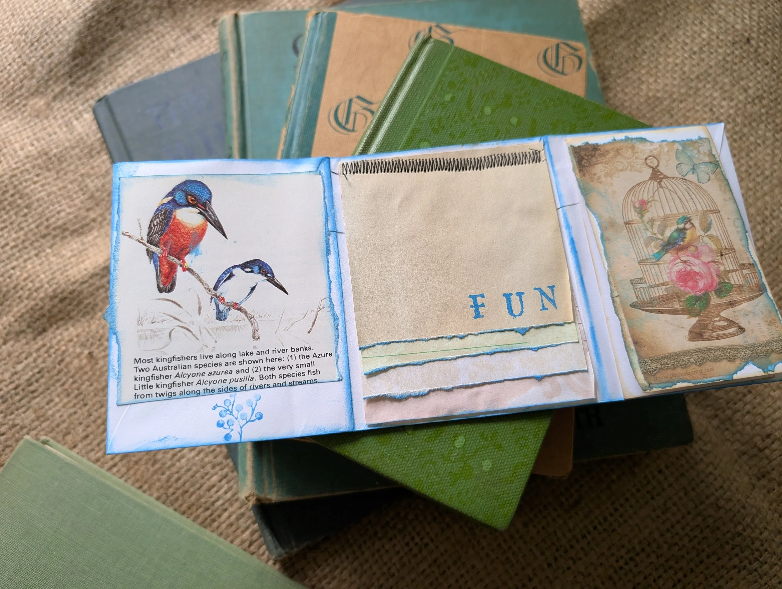 My canvas was a cardboard piece from packaging, covered in mod podge. I used a vitnage script stamp to decorate the cardboard, then mounted a piece of the inside of a pizza box covered in white mod podge onto the cardboard. Next, Vintage Belle was created using upcycled lace for the ruffled dress that is affixed to an oval (traced from a facial issue opening), lined with faux pearl straight pins. The dress was mounted on a 1960’s sewing book page that was torn and edges inked with vintage photo ink. Embroidery thread was wound around a paper thread spool and tiny scissor embellishment was tucked in the thread. New paper were purchased and mounted, coupled with vintage buttons gathered from secondhand stores to frame the art. Accepted as part of the Delta Kappa Gamma Mixed Media Art Category in Spring 2022.