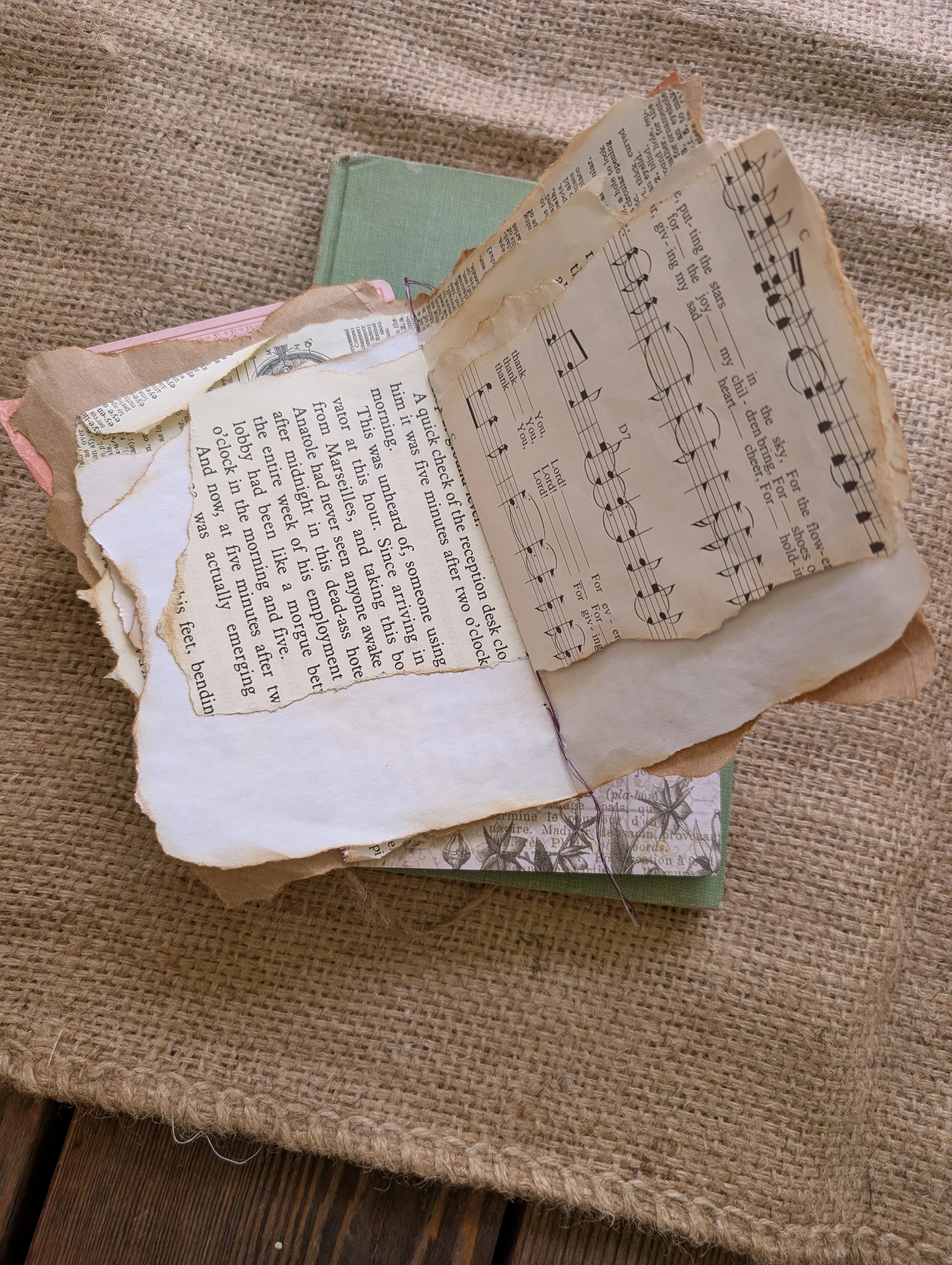 A junk journal is a handmade book made from repurposed or recycled materials—old book and magazine pages, paper scraps, envelopes, postcards, fabric, etc.—incorporating bits of ephemera and found objects. It’s a creative, expressive way to document your thoughts, memories, and ideas through collage, mixed media, and journaling, embracing imperfection and sustainability in contrast to more formal journals. Its open-ended, there is no pressure. Take the bones of these junk journals and make them deeply personal.